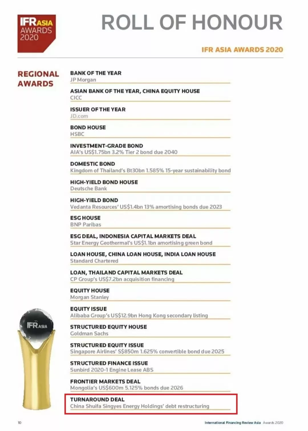 水發(fā)興業(yè)能源獲IFR 亞太2020 Turnaround Deal大獎
